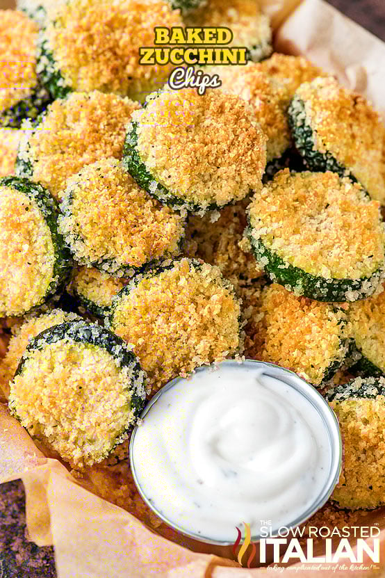 These tender Baked Zucchini Chips are coated in a scrumptious breading and are perfect for a fun appetizer or easy snack. Plus, it's easy to customize this recipe with a few herbs or your favorite dip!